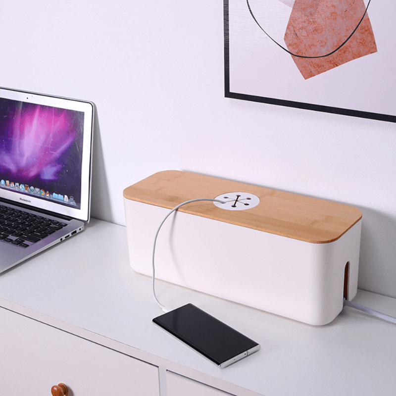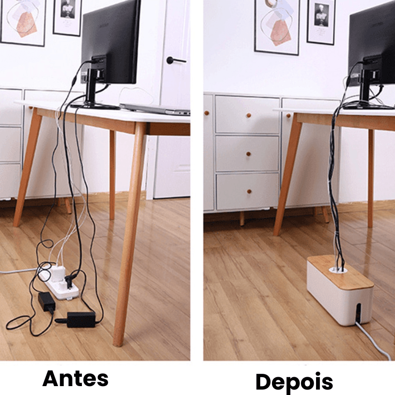 Feita de madeira resistente, garante durabilidade. Nunca mais se preocupe com cabos emaranhados e perdidos.