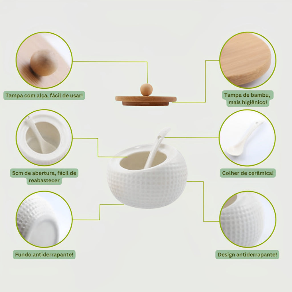 A vedação das tampas de bambu mantém seus temperos frescos por mais tempo, garantindo que cada prato que você prepara seja repleto de sabor.