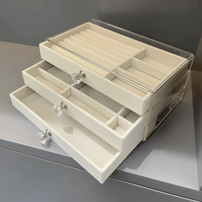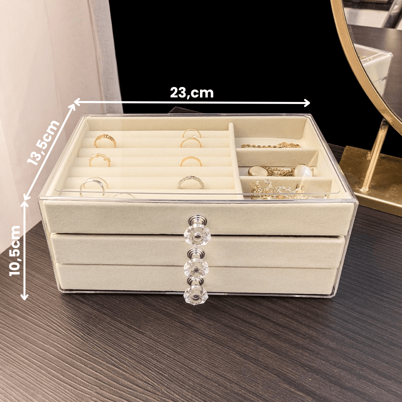 O Porta Joias Ágata Espacioso com três compartimentos generosos é ideal para manter suas joias organizadas e acessíveis.